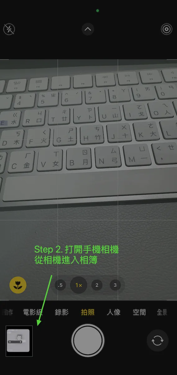 スマホのカメラを開き、左下のアイコンをタップしてアルバムに入る。