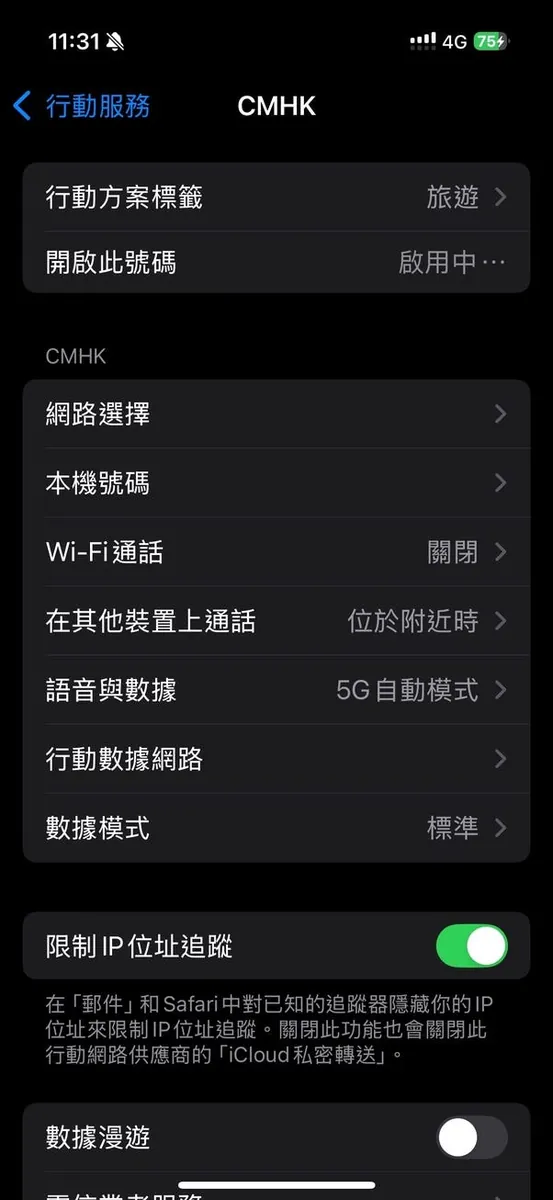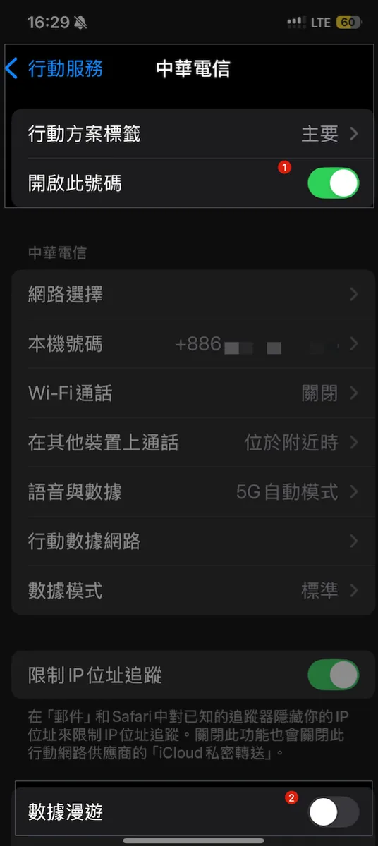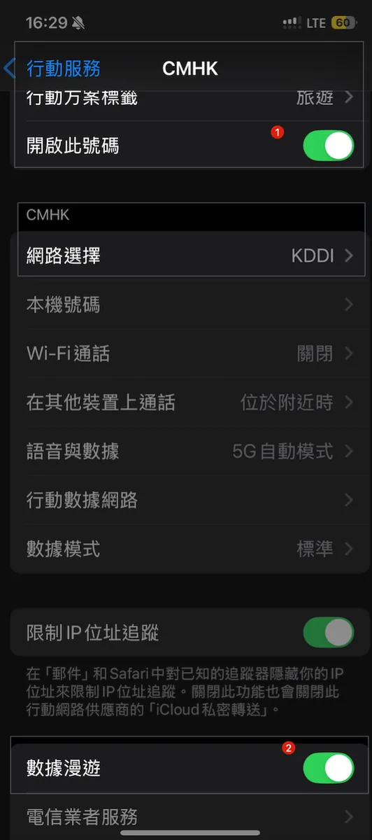 特に事前に対処したネットワークの問題は二つあります。まず一つ目は、私の中華電信のローミング機能がオフになっているため、ローミングプランを直接購入できません。そのため、念のために中華電信に電話してローミング機能を解除してもらいました。