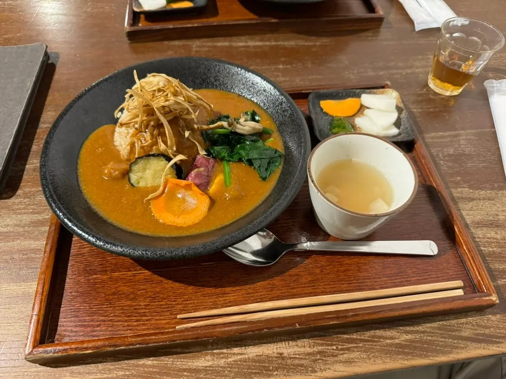 昼食には有名な三宅商店のカレーセットを食べました。濃厚なカレーとごぼうの細切りがよく合って美味しかったです。