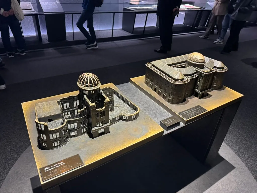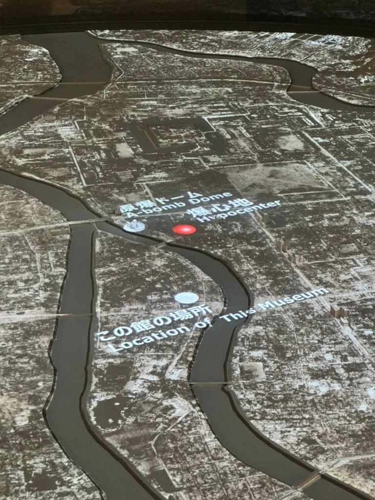 平和記念資料館のチケットを買うために列に並びました。館内には原爆の経過や歴史、資料写真や展示物が豊富にあります。全体の見学は非常に重く、衝撃的でした。