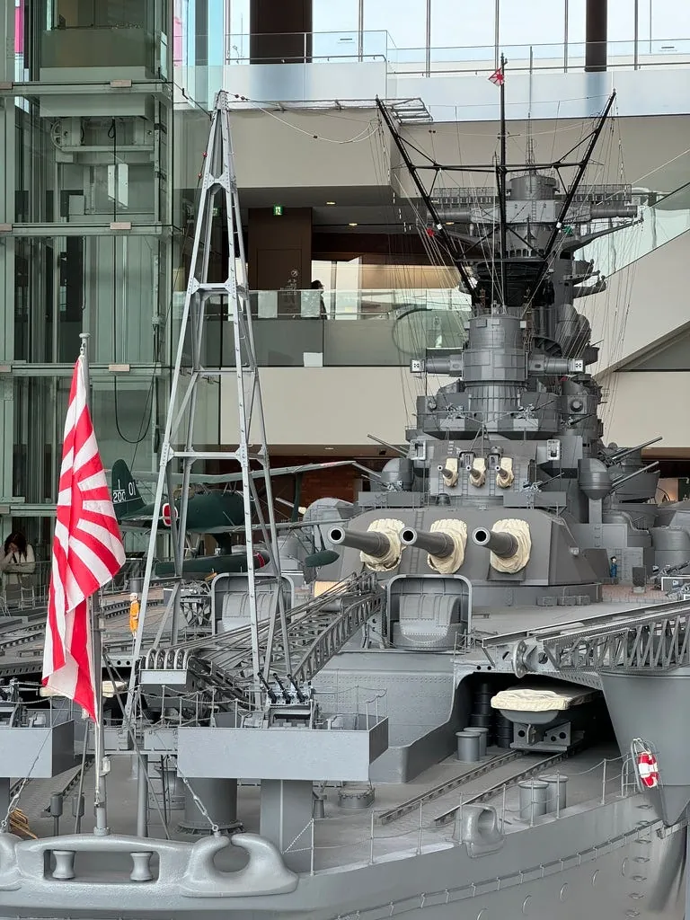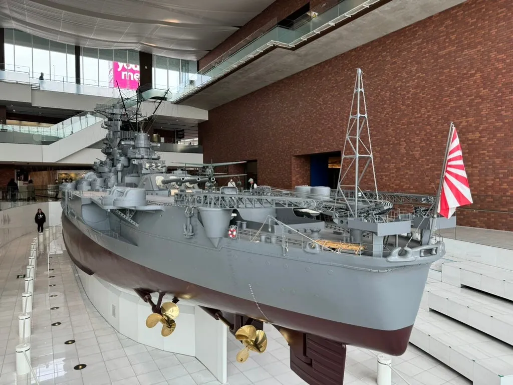 中には360度間近で見られる大和戦艦があり、細部までほぼ完全に再現されています。また、戦艦や戦争の歴史、戦闘機、大砲なども展示されており、戦艦ファンや軍事ファンには見逃せません。さらに、特別展も開催されており、日本の空母の設計・開発史や設計図の手稿も展示されています。