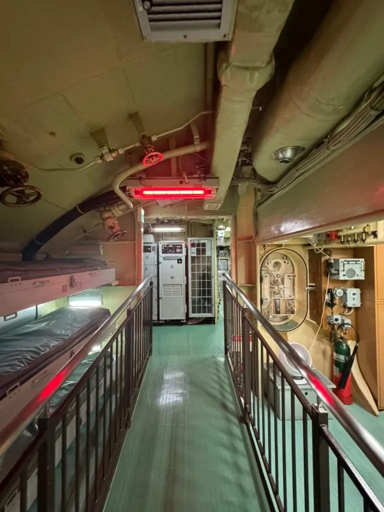 最後に特別なのは、本物の潜水艦に入って、実際の機関室、宿舎、船長室、操縦室を見学し、潜望鏡で外の様子を見ることができる点です。