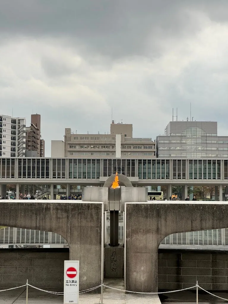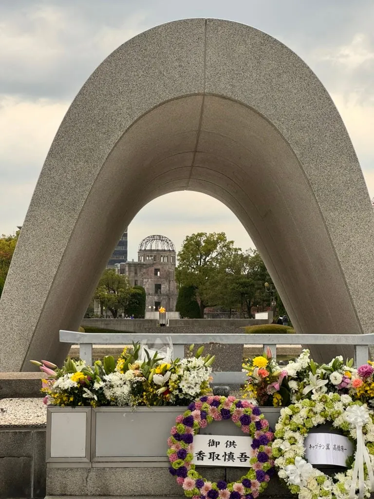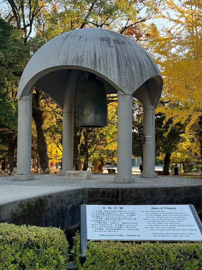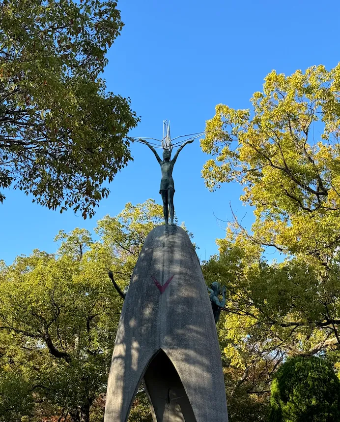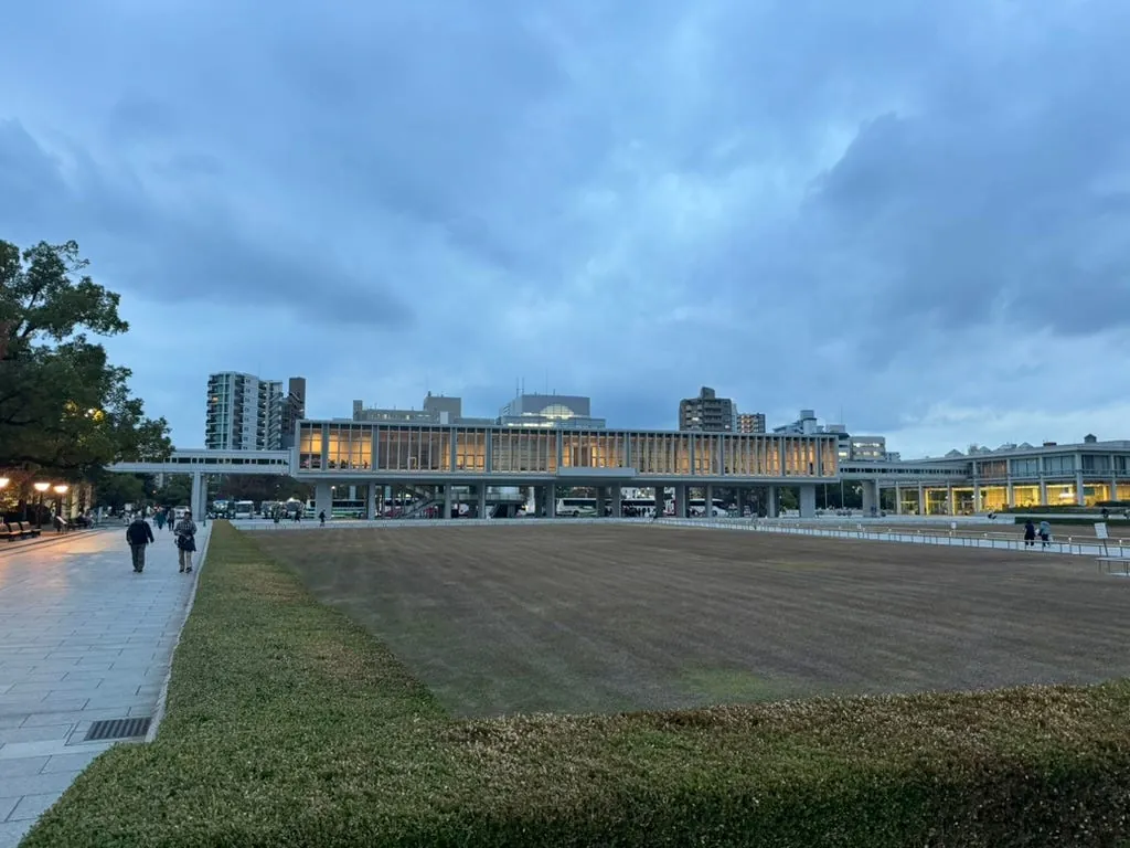 最後の訪問地は再び平和記念公園で、隣には折り鶴の塔(高さは低く、中には入りませんでした)があります。