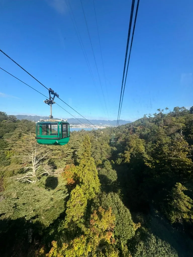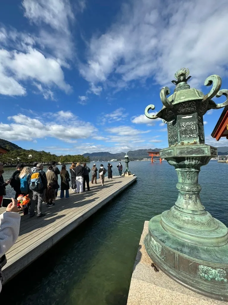 フェリーで約10分で宮島に到着します。フェリーはとても安定していて、ディーゼルの臭いもありません。到着間近になると、海上の鳥居が遠くに見えます!