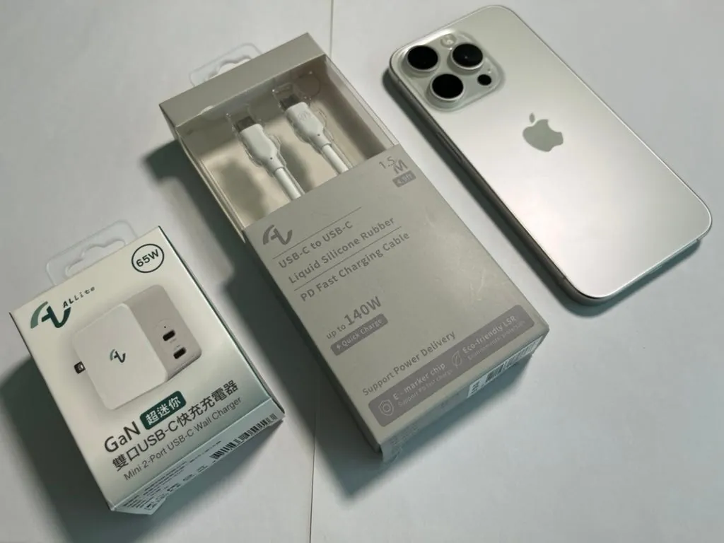 今回の旅行では、Allite A1 65W ガリウムナイトライド急速充電器+Allite 液体シリコン急速充電ケーブル の組み合わせを持って行きました。iPhone 15に変えてから、ほぼすべての機器がType-Cポート対応になったので、旅行にはType-C充電ケーブルだけ持っていけばすべて解決できます。