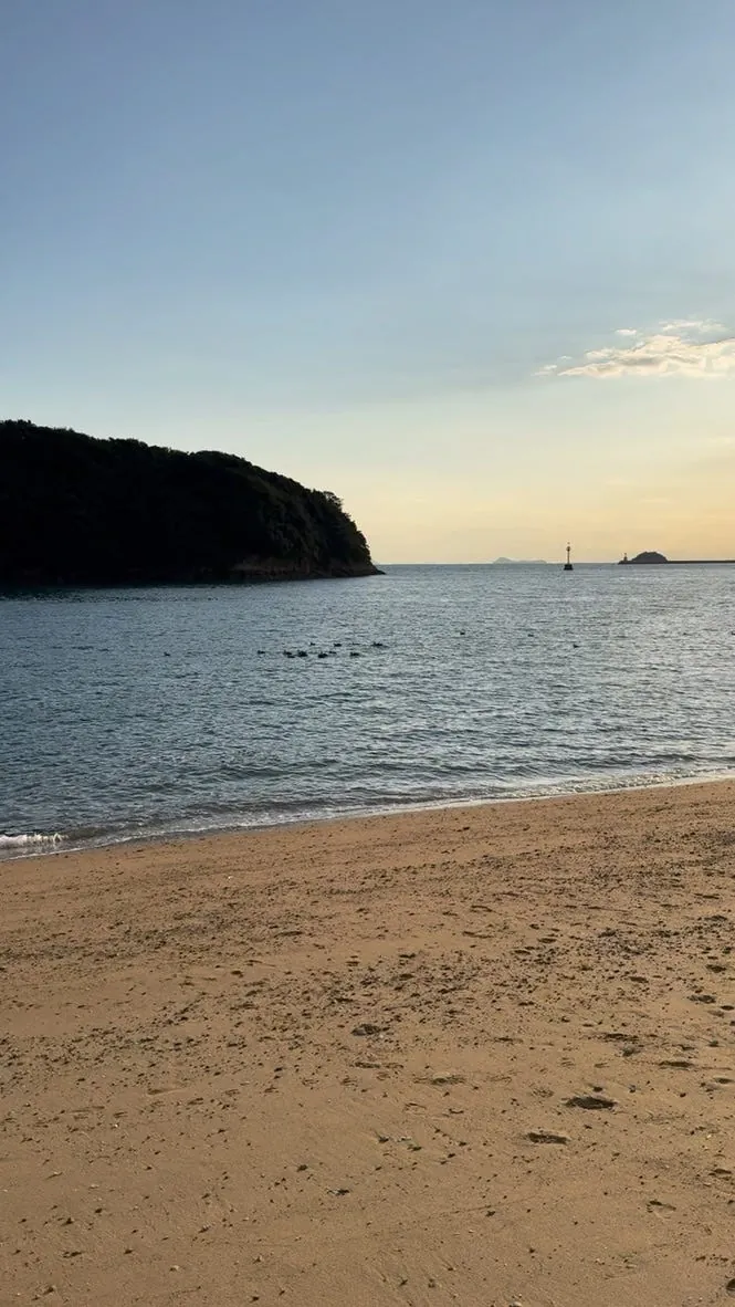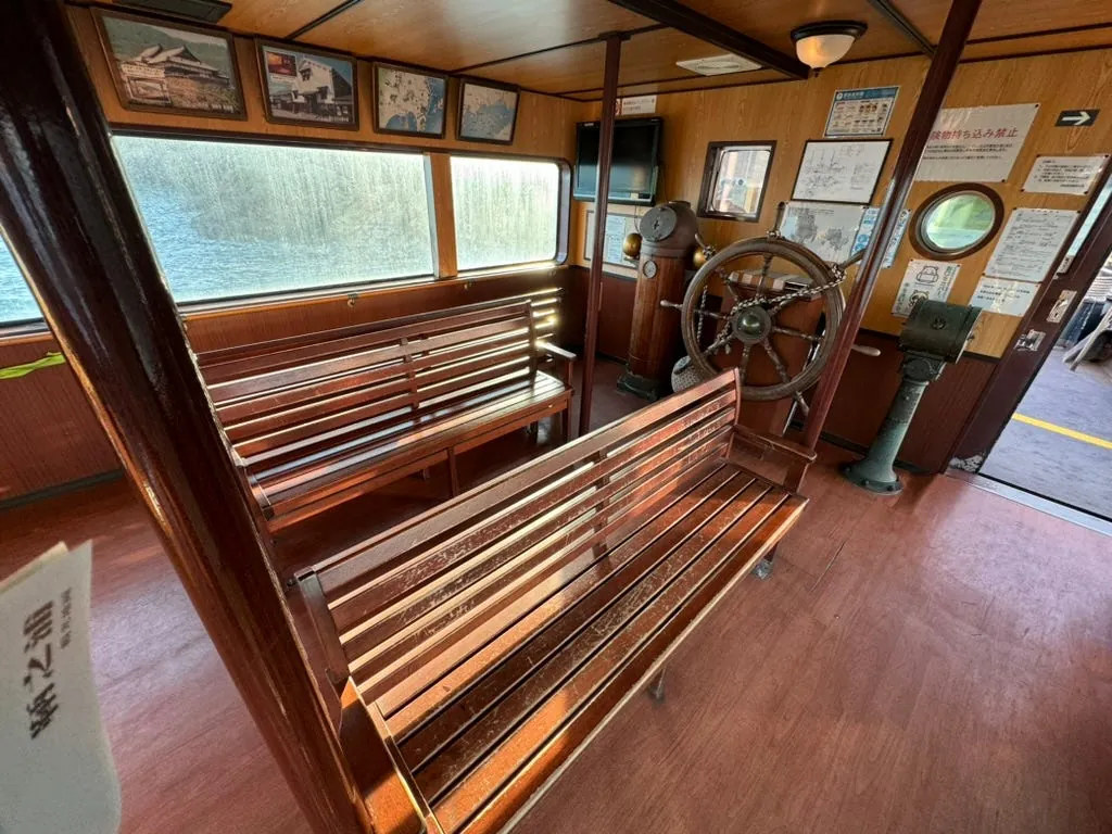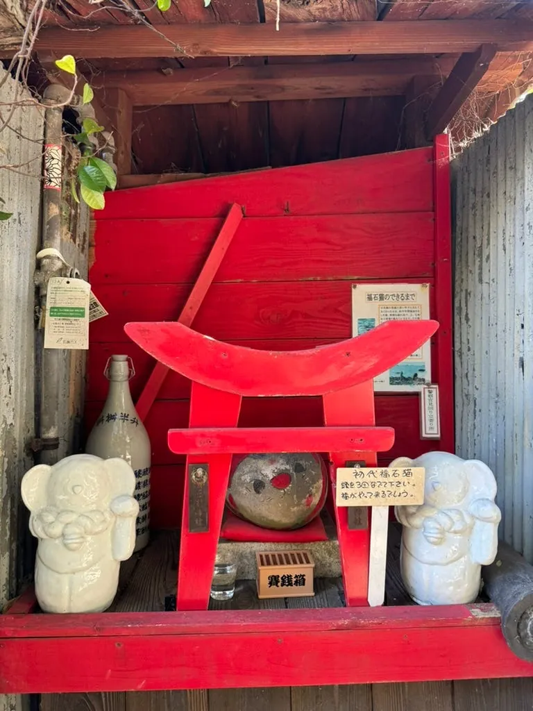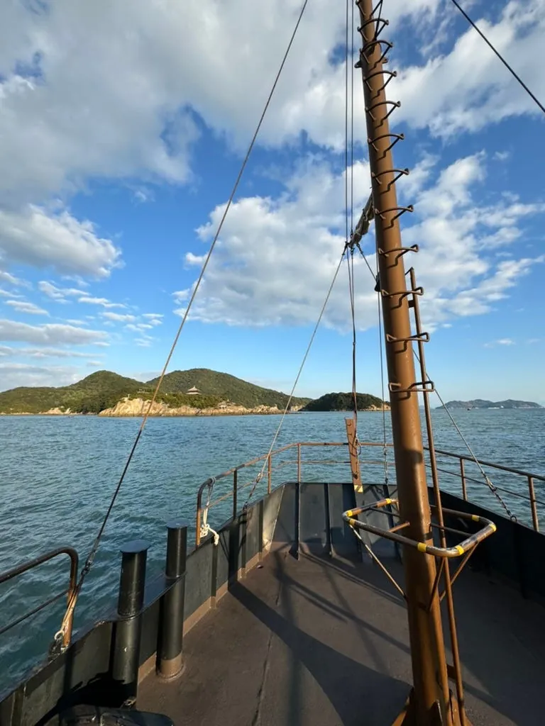 約15分ほどしか滞在せず、行く場所がなかったのでフェリーの出発を待ちました;この場所は寂しいですが、自動販売機はありました!帰り道に遠くの弁天島を近くで見ました。海の中に孤立して立つ小さな島と鳥居です。