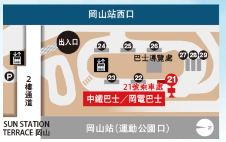 出るとすぐに空港シャトルバスに乗れます。便数が少ないため、時刻表では 16:10 まで岡山駅行きのバスがありませんが、空港出口には臨時便が運行されており、満席になり次第出発します。次の便もあるので、時間を節約できてとても親切です!