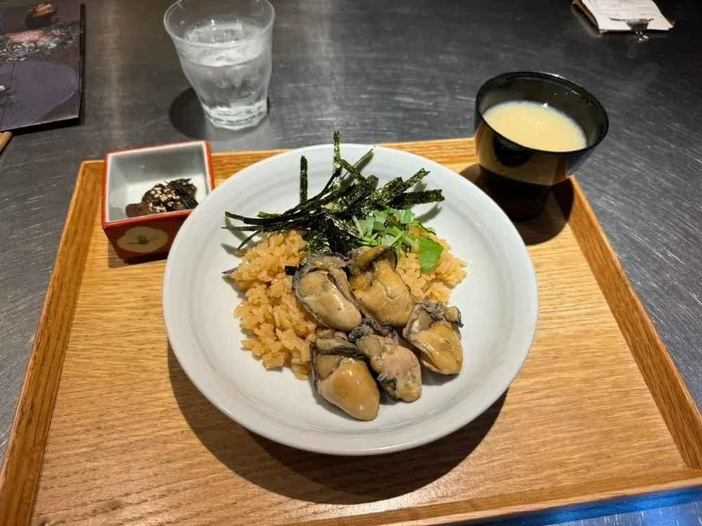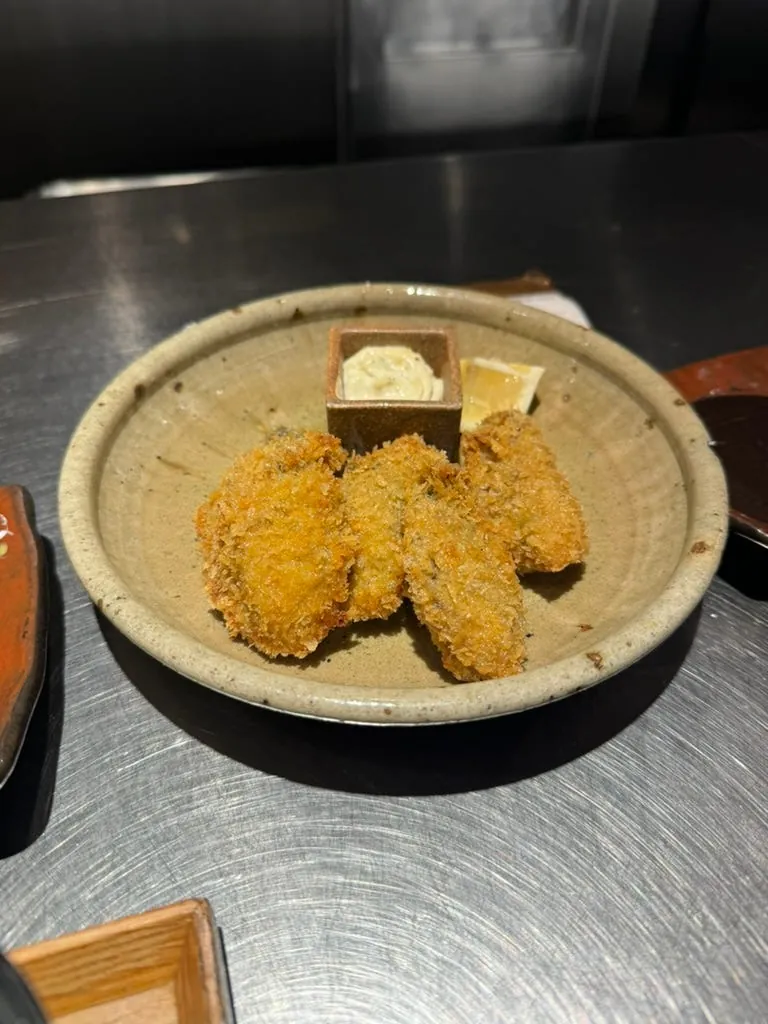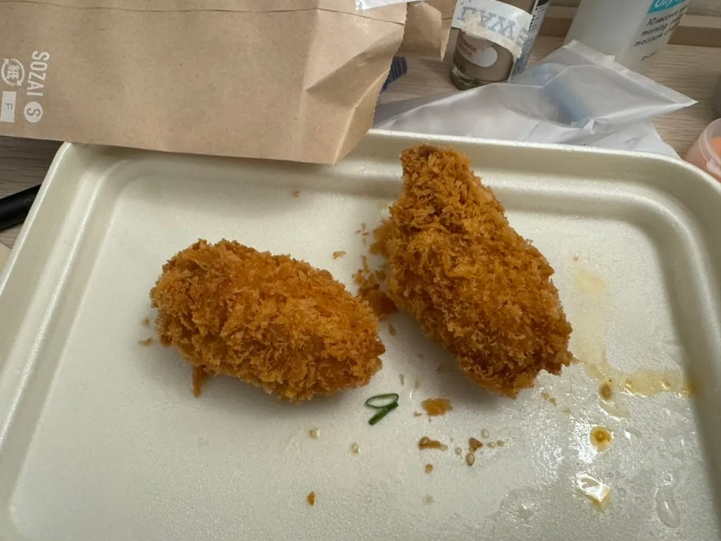さらにコンビニで買った揚げカキを2個追加(1個100円だけ)。