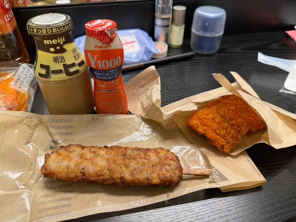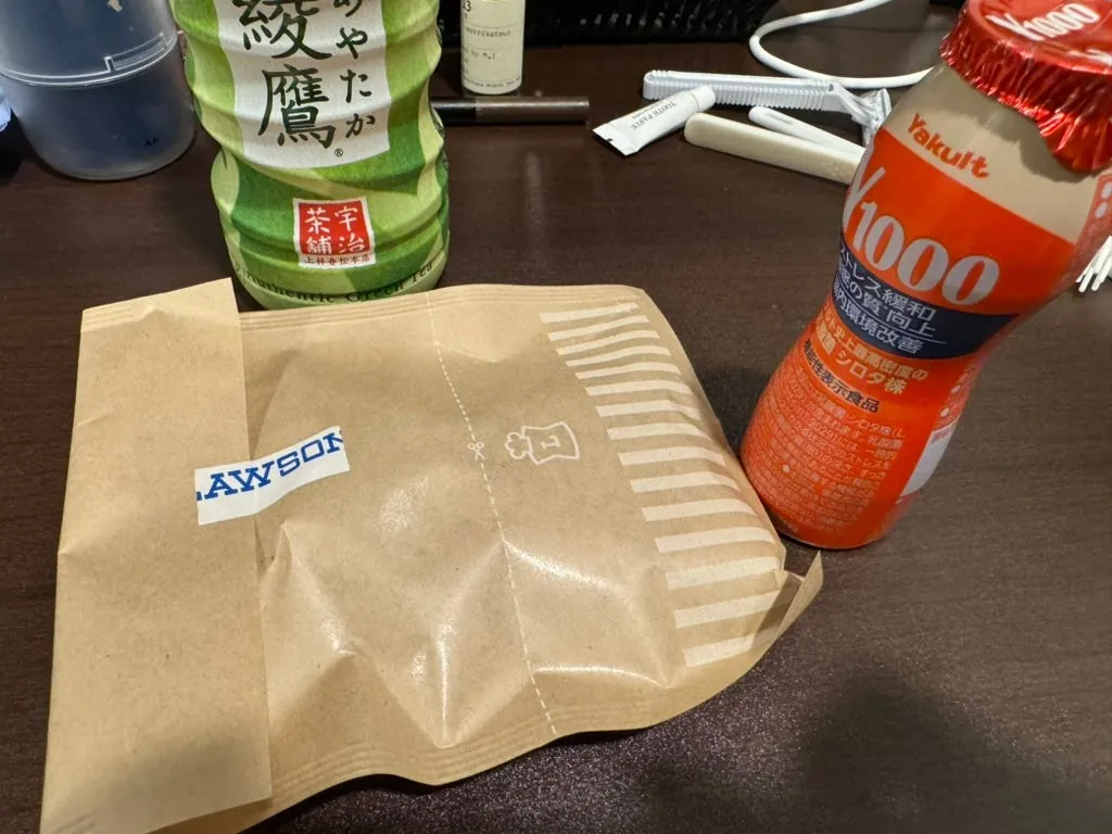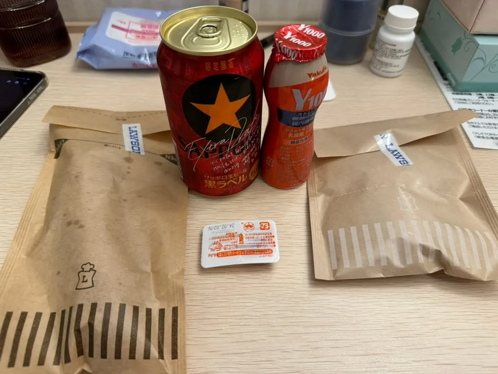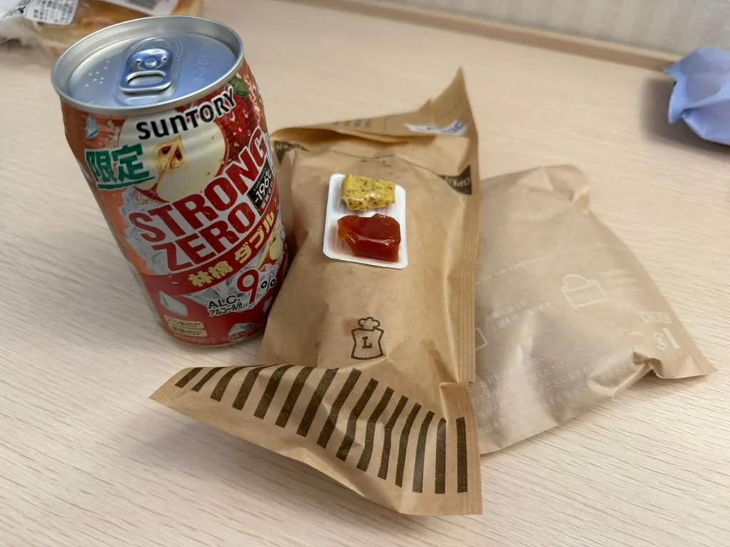 日本での最後の夜は、コンビニのチキンナゲットと1000円分の買い物、さらに白桃いちごミルクをもう一本買って夜食にし、すぐにぐっすり眠りました。