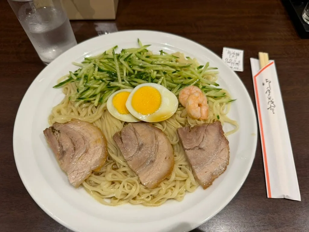 最後に呉市の冷麺を選びました。涼麺に似ていて、豚骨チャーシューがのっています。麺は冷やされていて、さっぱりとした味わいです。量は多めなので、小盛りを注文するのがおすすめです。