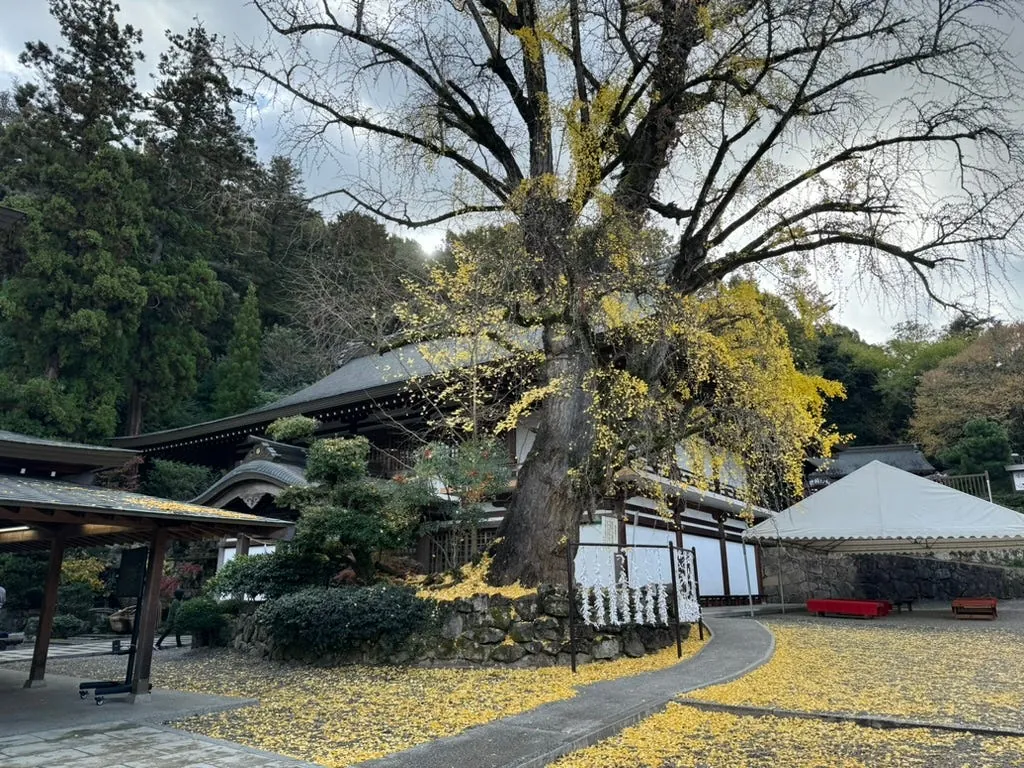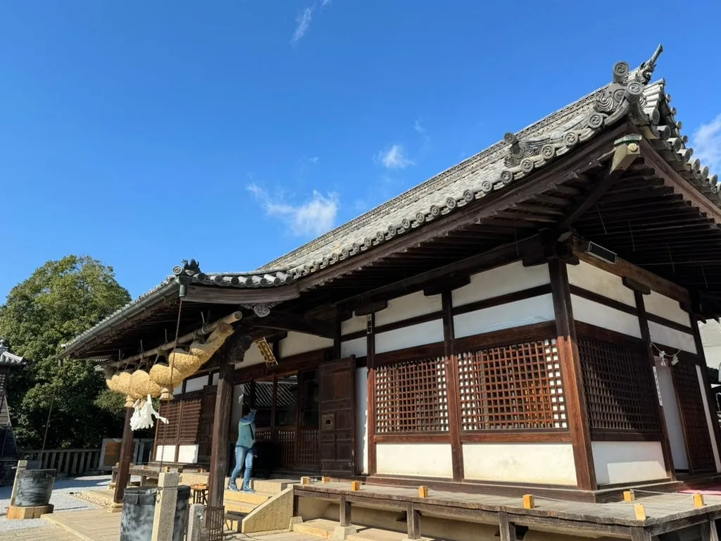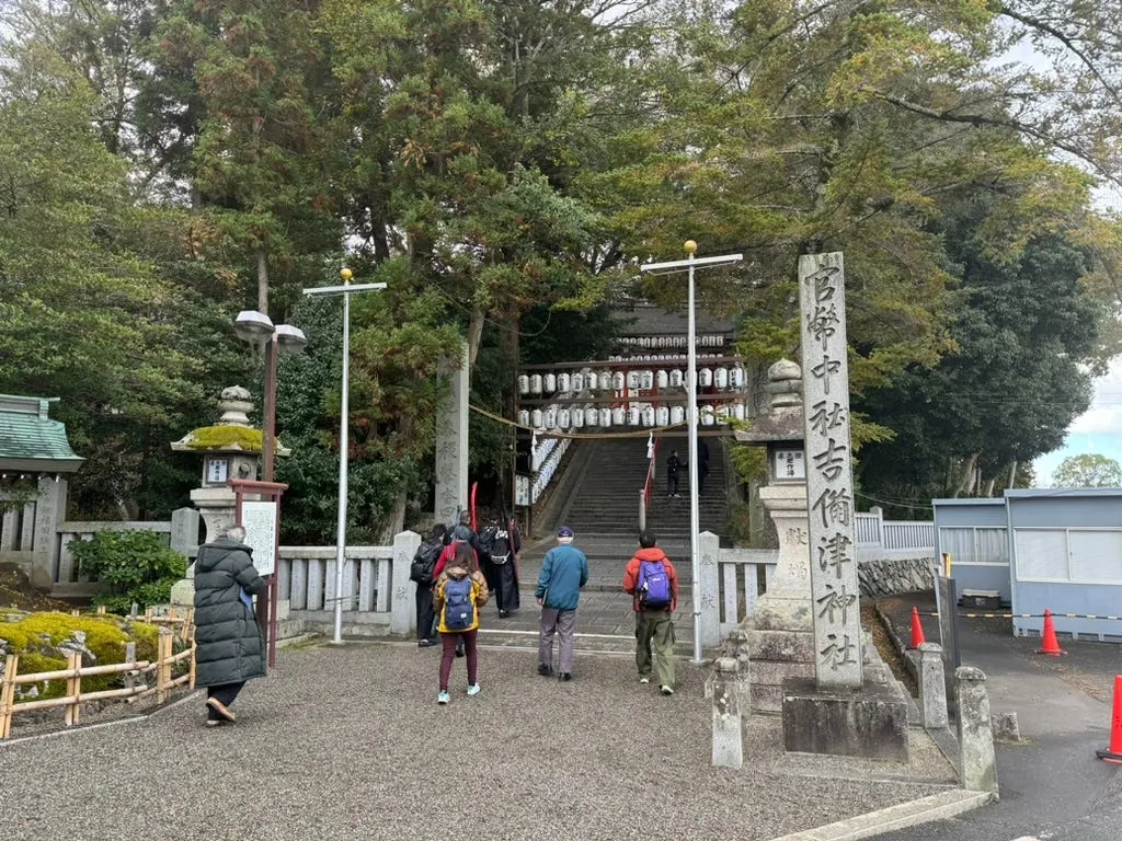 駅に着いたらすぐに吉備津神社へ向かいます(車で約30分)。駅からは徒歩で約15分かかります。歴史ある檜の長廊やイチョウの木、歴史的な建物があり、散策と参拝に最適です。