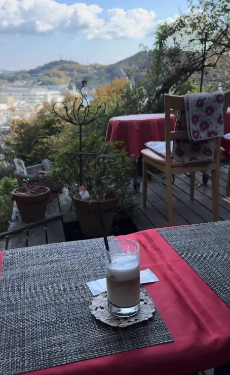 食べ終わってから散策を続け、疲れたのでパーラー果物小町へ行きました(特徴は店員が大正時代のメイド服を着ていることです)。フルーツパフェは、岡山晴王ぶどうとフルーツアイスクリームがのっていて、ぶどうが甘くてびっくりするほどでした。