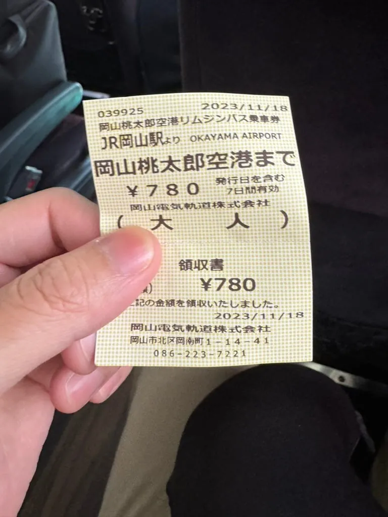 場所:岡山空港もシャトルバスを利用しますが、到着時間が早いため、時間に余裕があります。