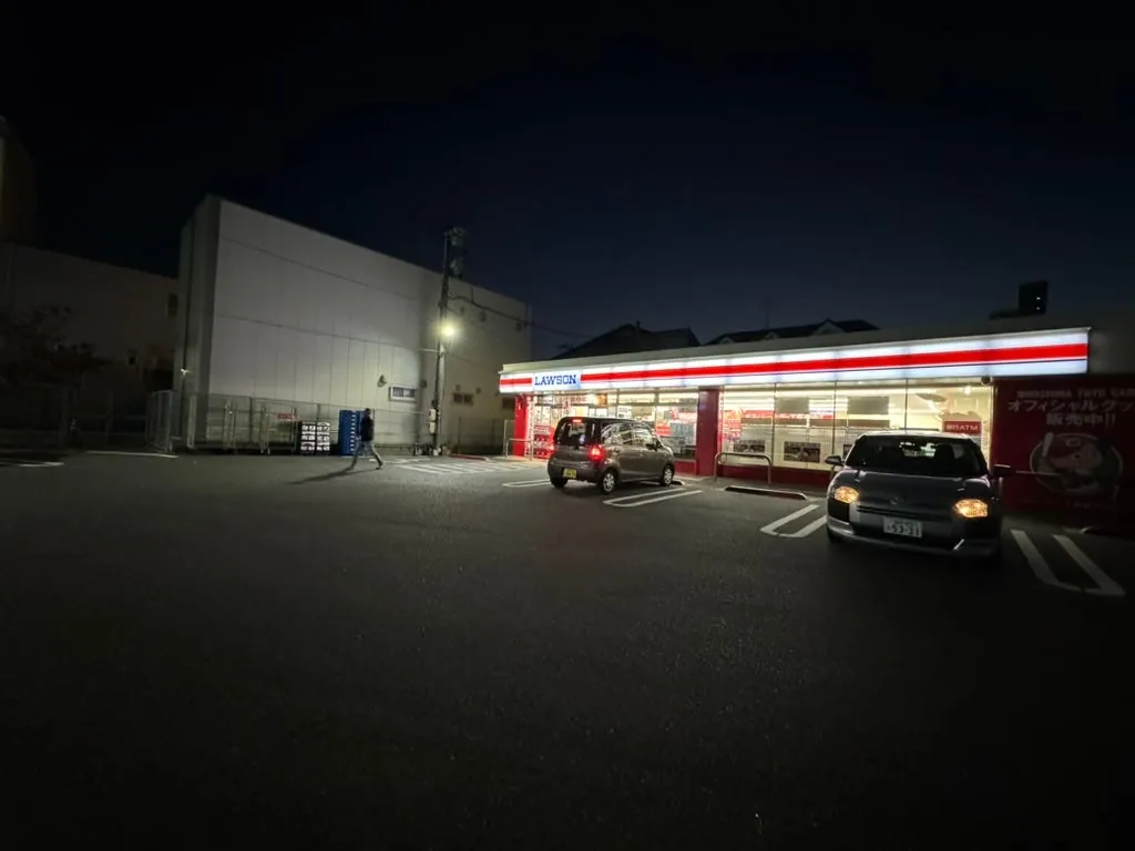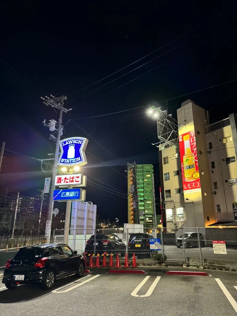 先にホテルでチェックインして荷物を置き、その後食事を探しに出かけました。野球の試合がないときはこの通りはとても静かで、向かい側は鉄道です。道にはあまり店がありませんが、大きな路面店のローソンがあって助かりました。
