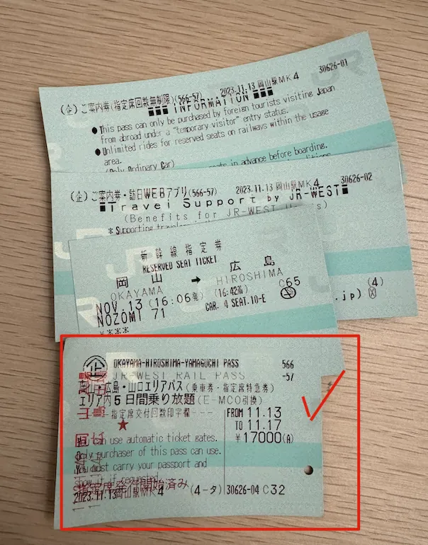 JR Pass 岡山&広島&山口エリア鉄道周遊券 (¥17,000、2023年10月末の値上げ直後に購入しました。)