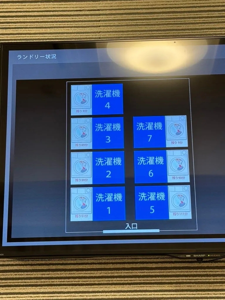 部屋は同じく広くはなく、設備は充実しており、電子機器も便利です(部屋から洗濯室の状況が見え、テレビで直接AirPlayが可能)。