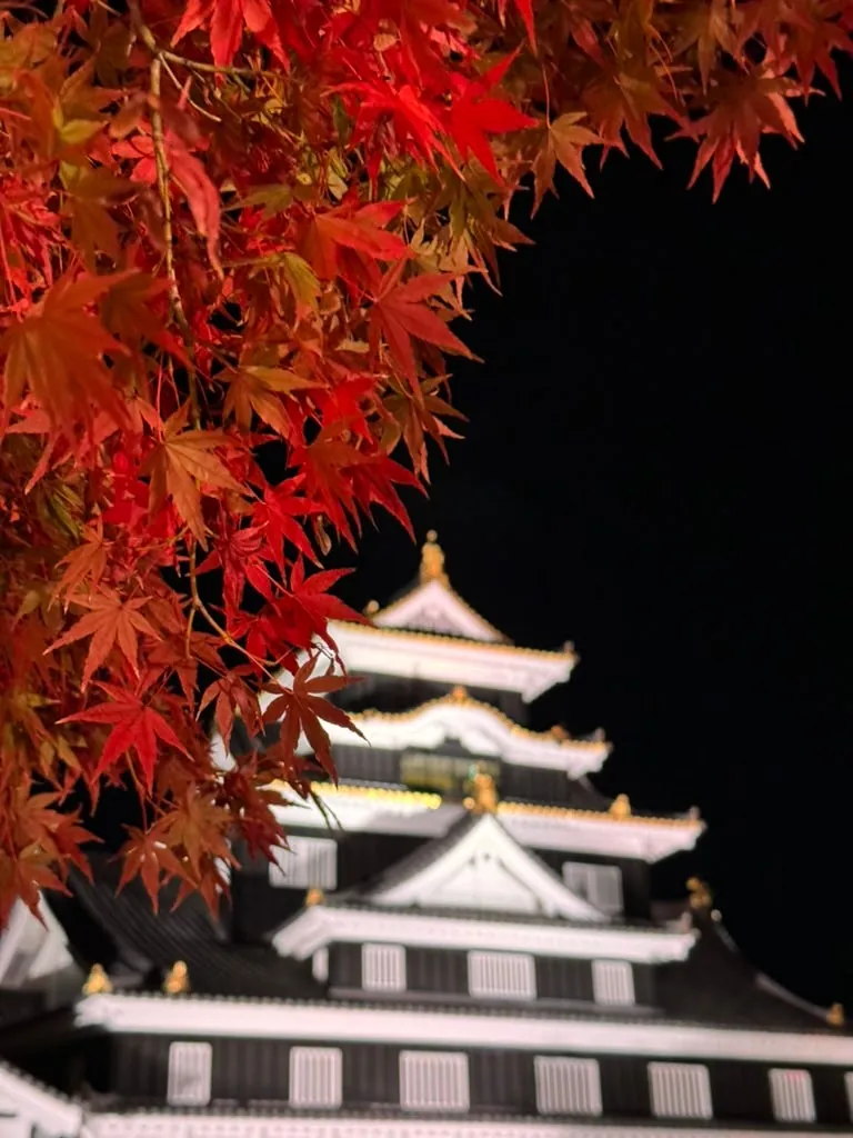 ついでに隣の岡山城へ夜景を見に行き、紅葉とライトアップが織りなす独特の雰囲気を楽しみました。