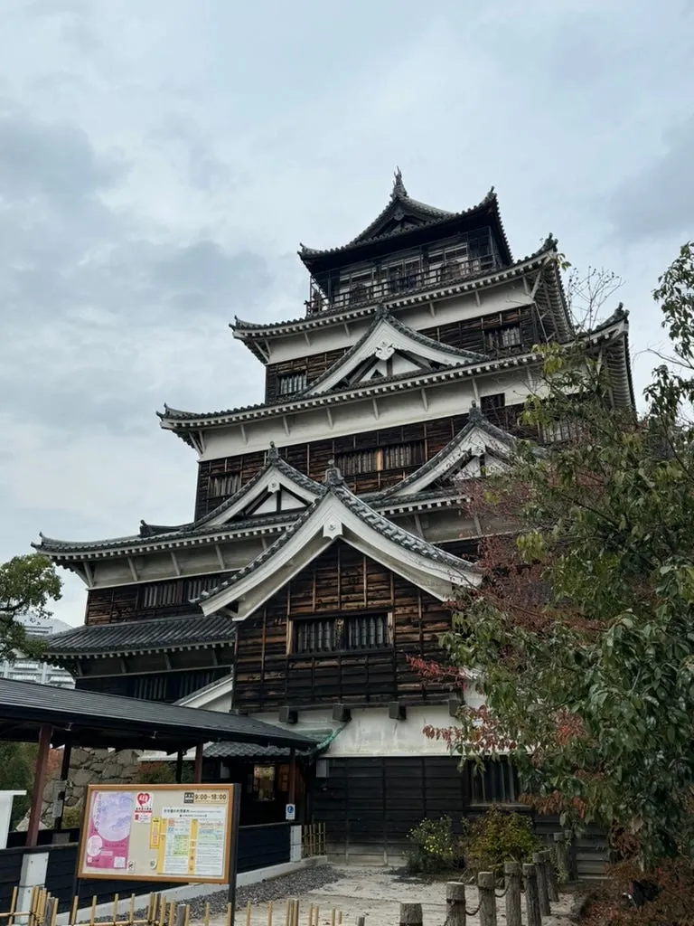 次の目的地は広島城です。広島城は原爆で消失しましたが、現在の広島城は後に再建されたもので、全体的に新しく、高さもあまり高くありません。天守閣からの景色はあまり良くありません。