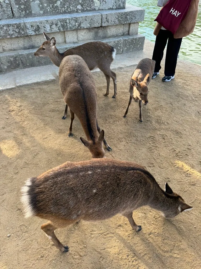 宮島の鹿は人懐っこいですが、紙袋やビニール袋、さらには地図を噛むこともあります。