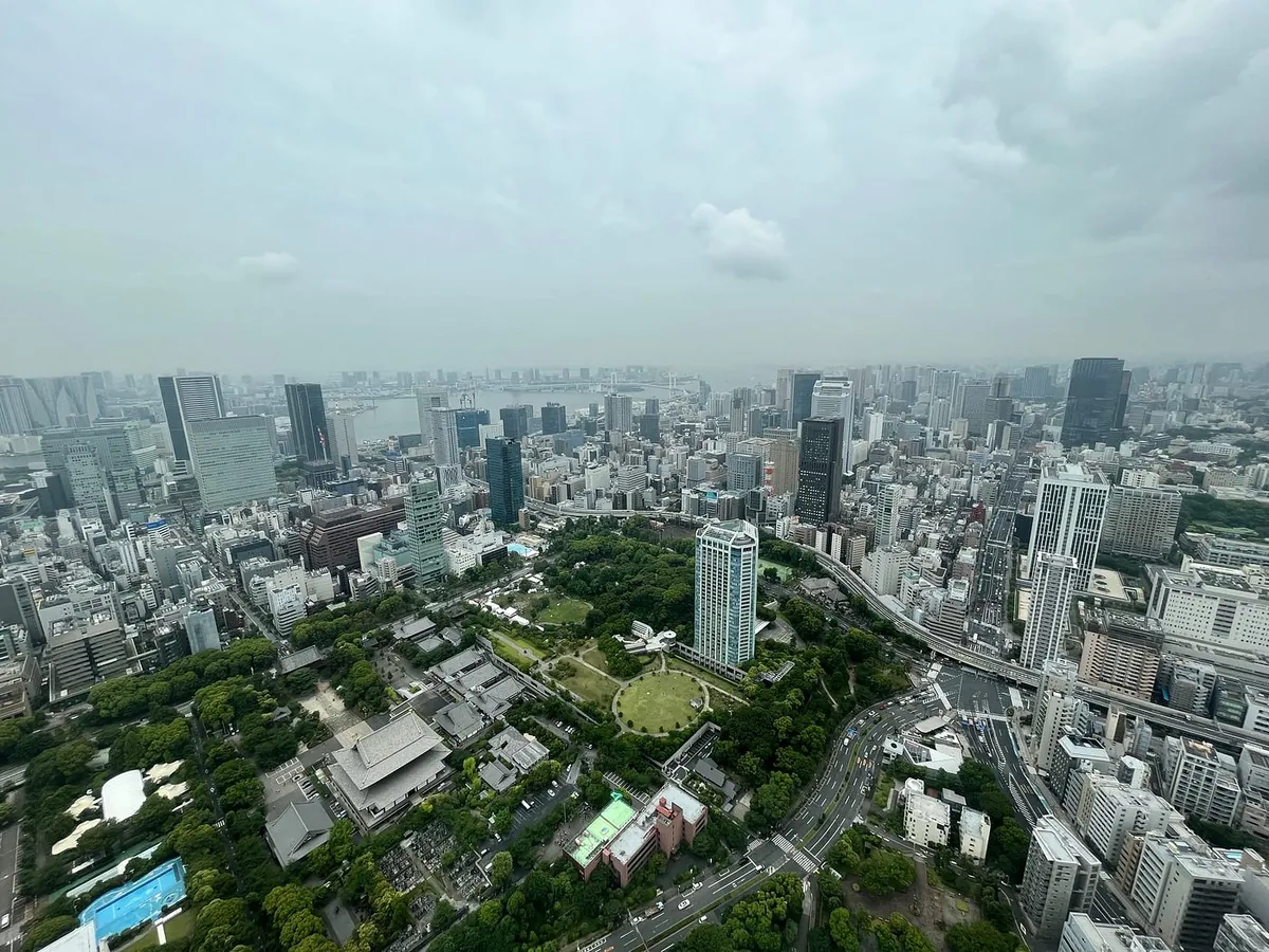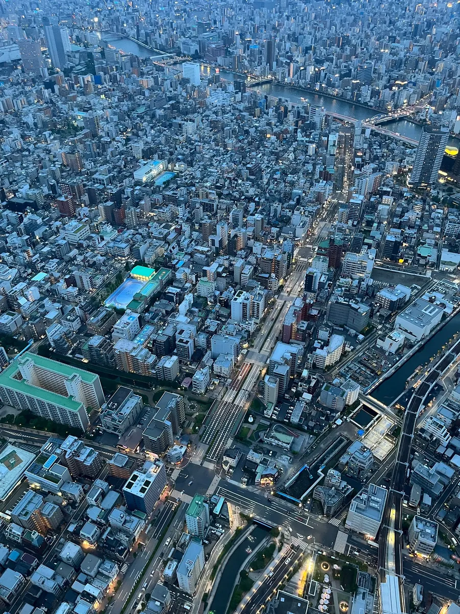 朝に東京の景色を見下ろすのも良いです。三枚目の写真の遠くに見えるのが、夜に行く予定のスカイツリーです。