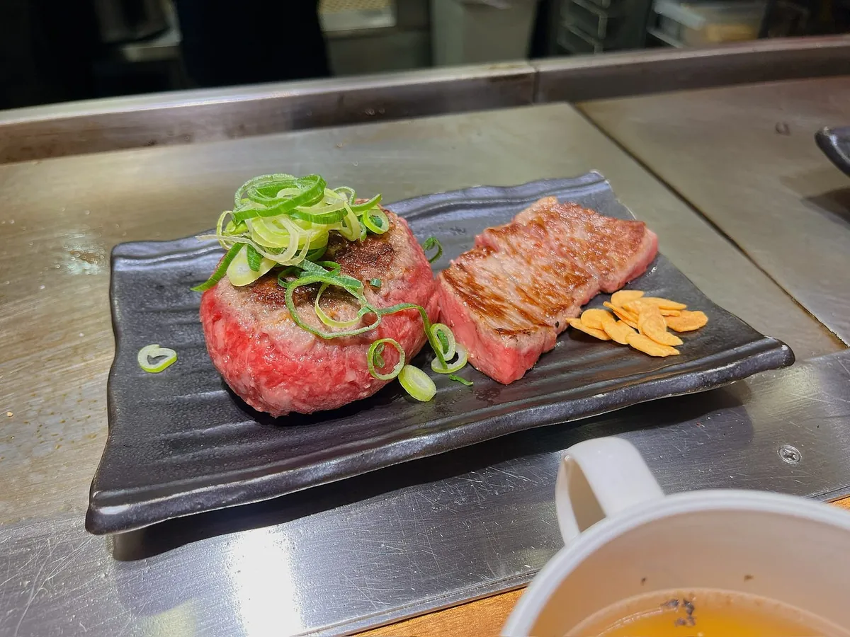 私が注文したのは、神戸牛ハンバーグ+神戸牛ステーキ+スープご飯アイスクリームのセットメニュー(3,355円)です: