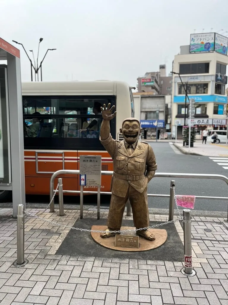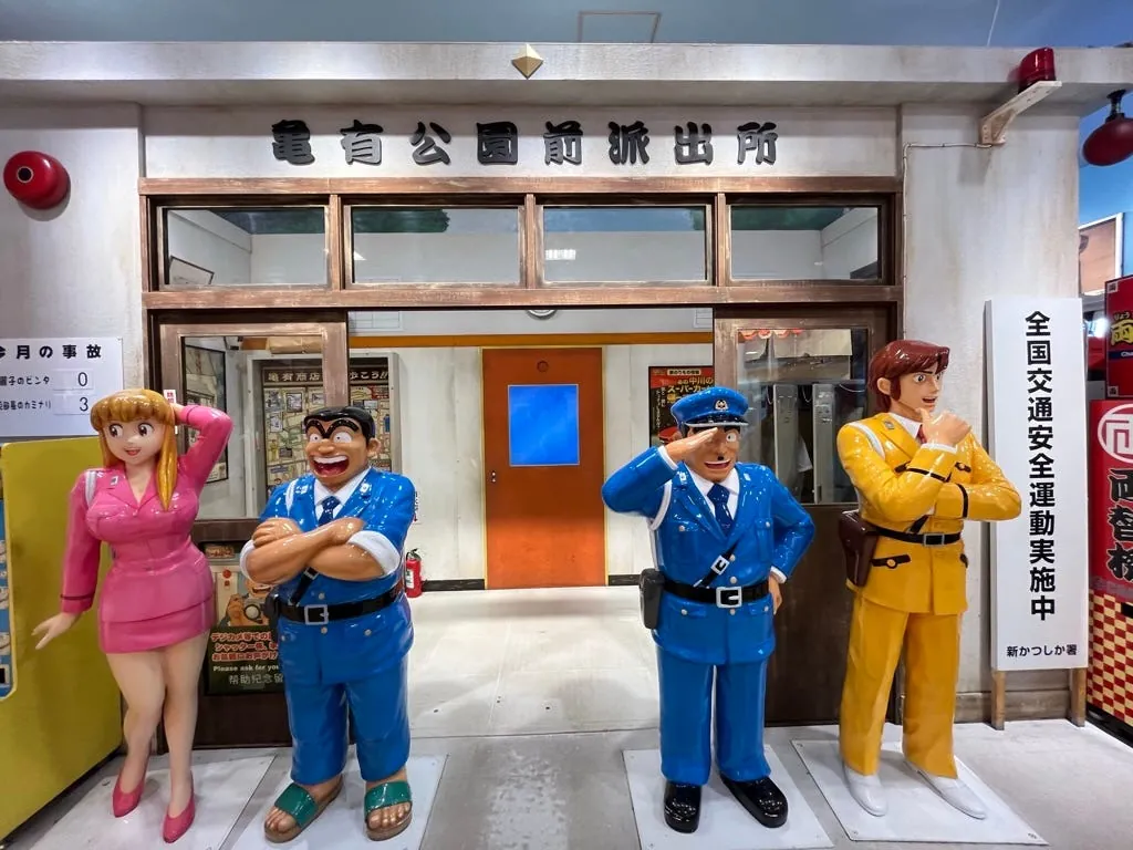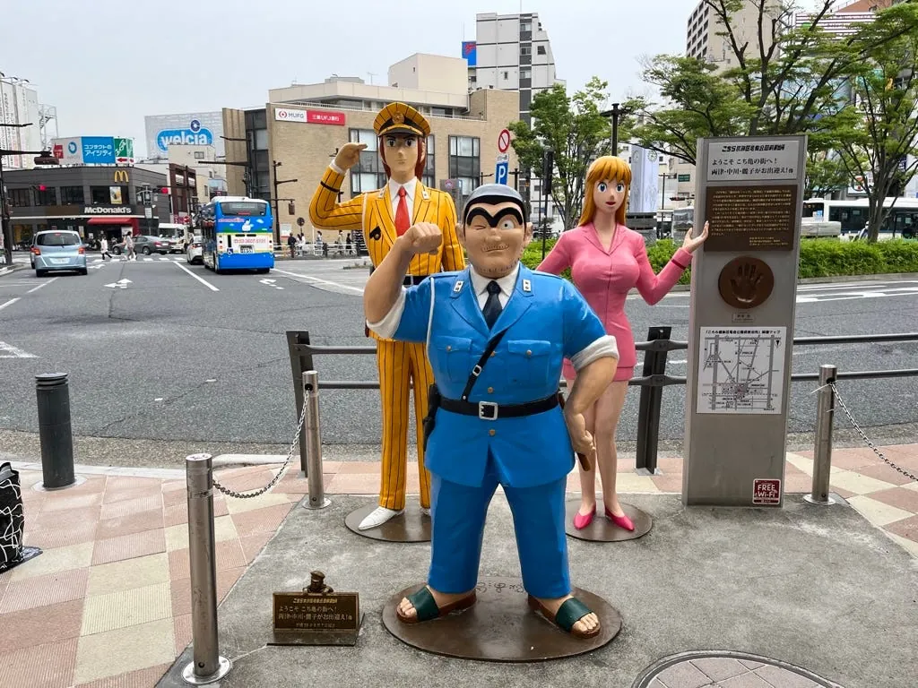 駅の正面出口を出るとすぐに「こち亀」のキャラクター像があります: