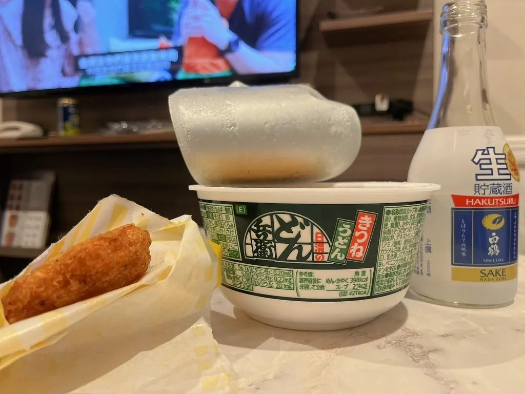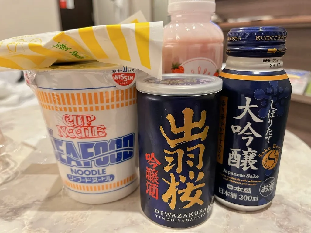 やっぱり日清のカップラーメンは美味しいし、コンビニの唐揚げも最高🤤!数日前にメロンの果肉入りジュースを買って、今日はイチゴのを買ったけど、どちらも美味しい;日本酒は覚えてないけど、この二つは普通かな。