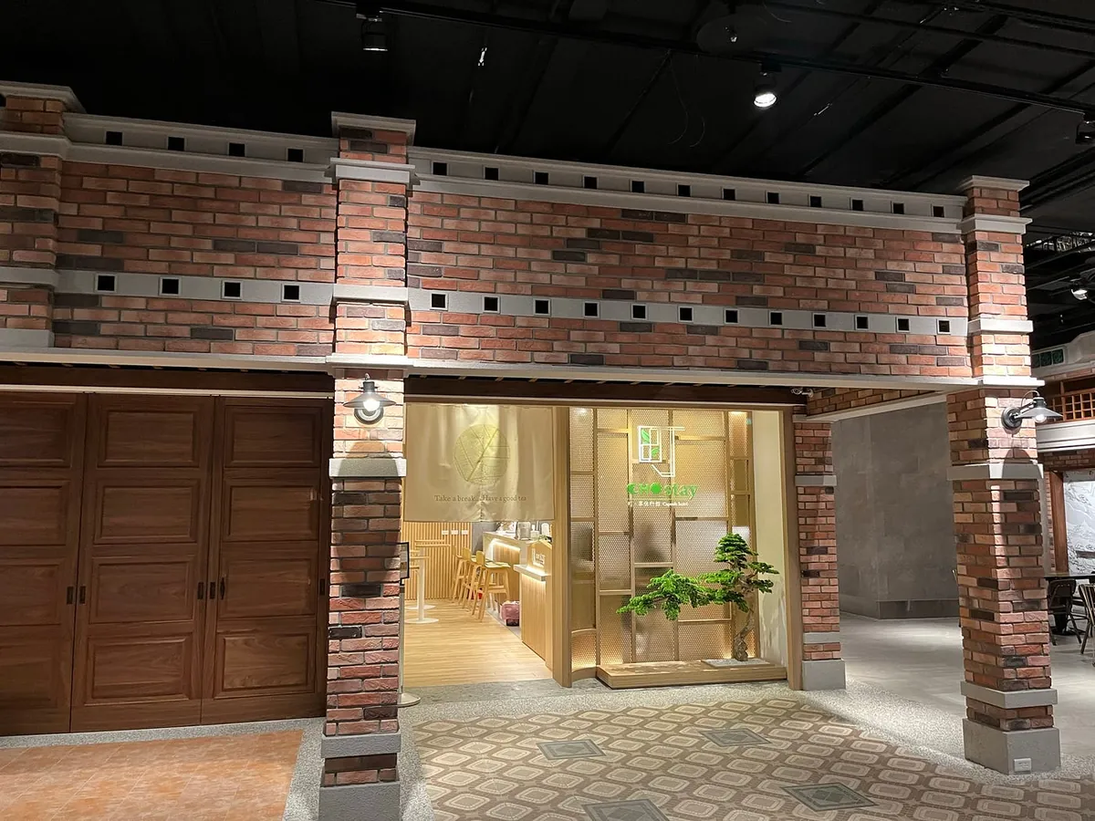 エスカレーターを上がると、すぐに台湾風の旅館の入口が見えます。