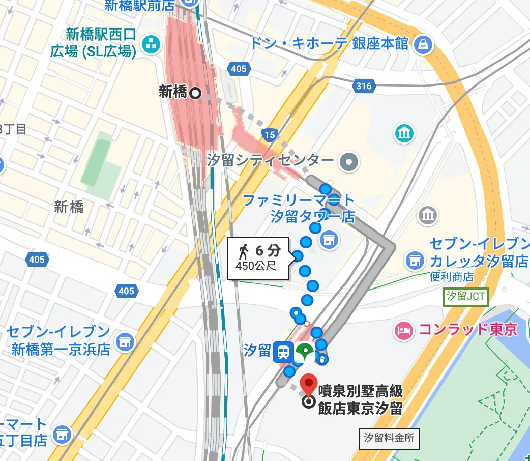 東京駅に到着後、地下鉄に乗り換えて新橋駅へ行き、そこから道を探して歩いて汐留まで向かいます。