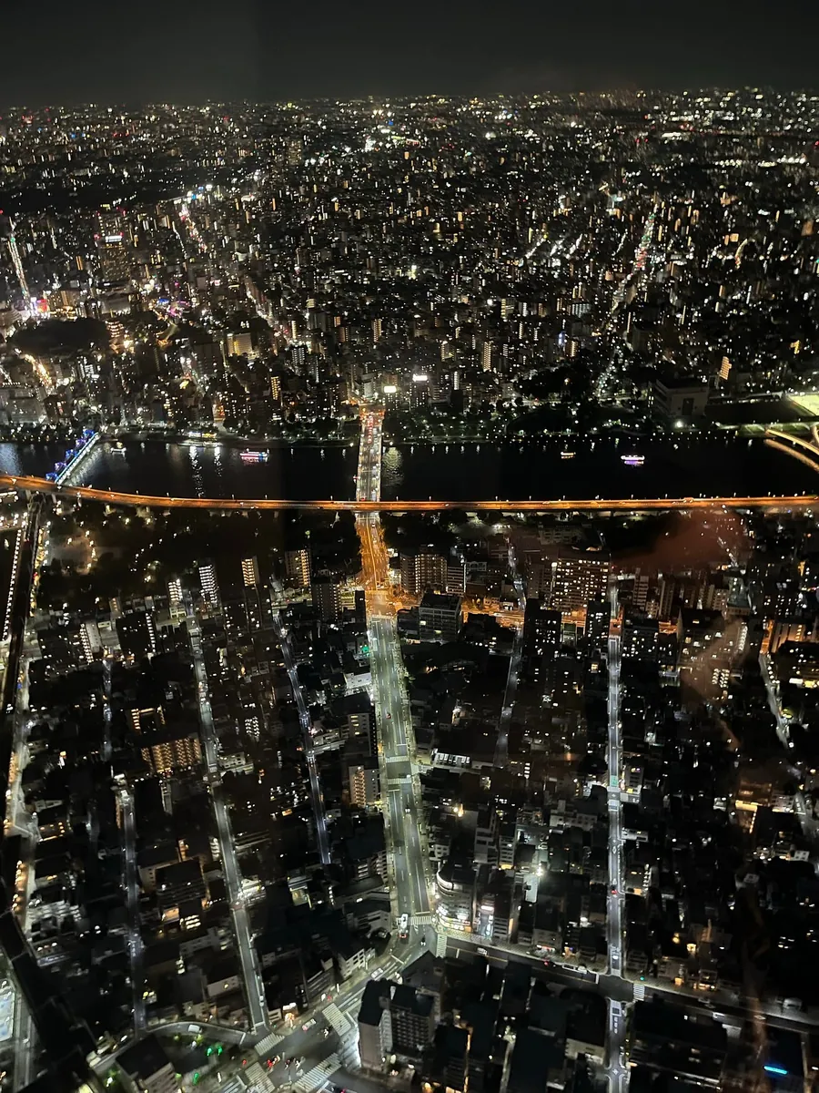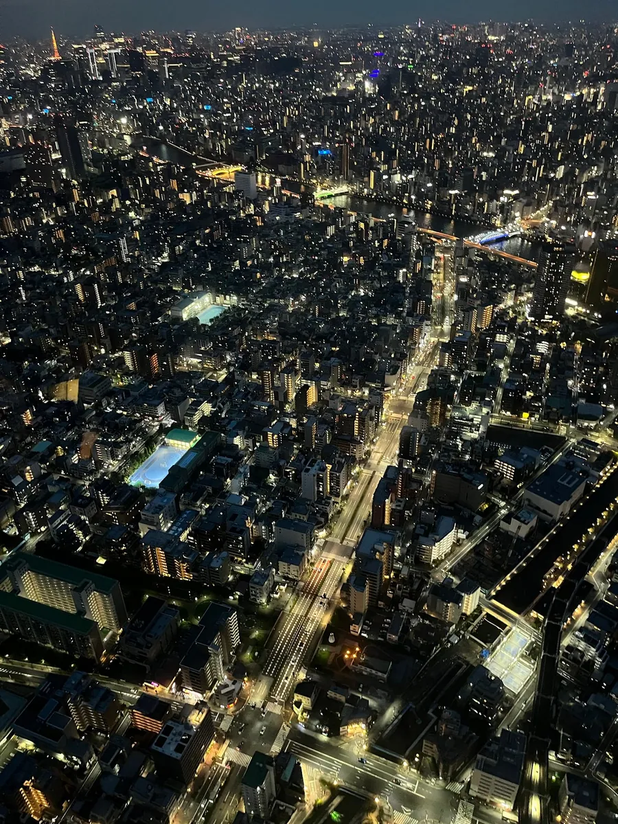 晴空タワーはTop Deckのチケットが取れず、中間の展望台のみ購入し、7時に入場しました。