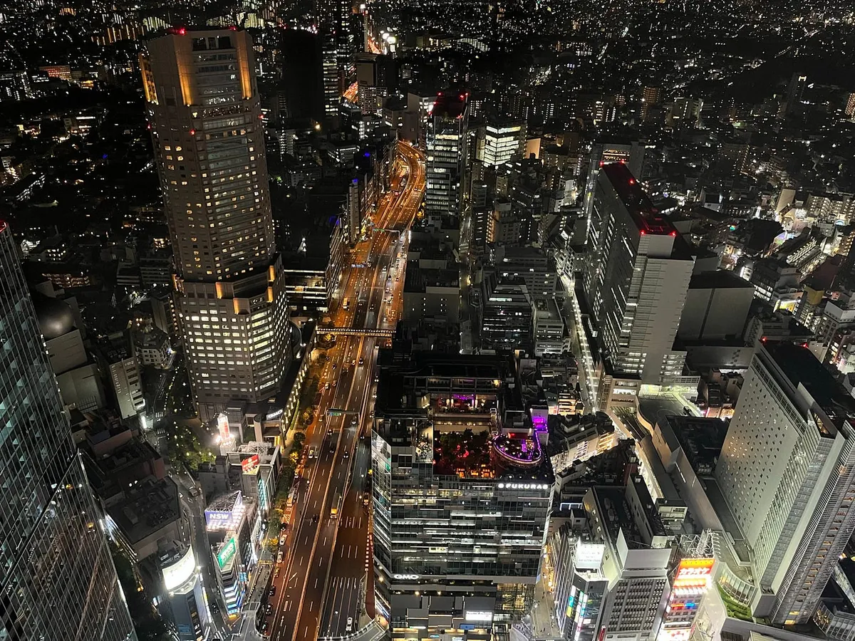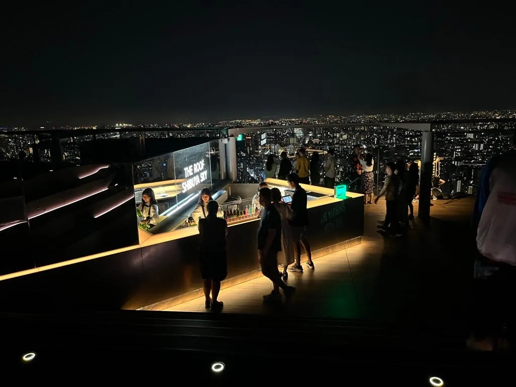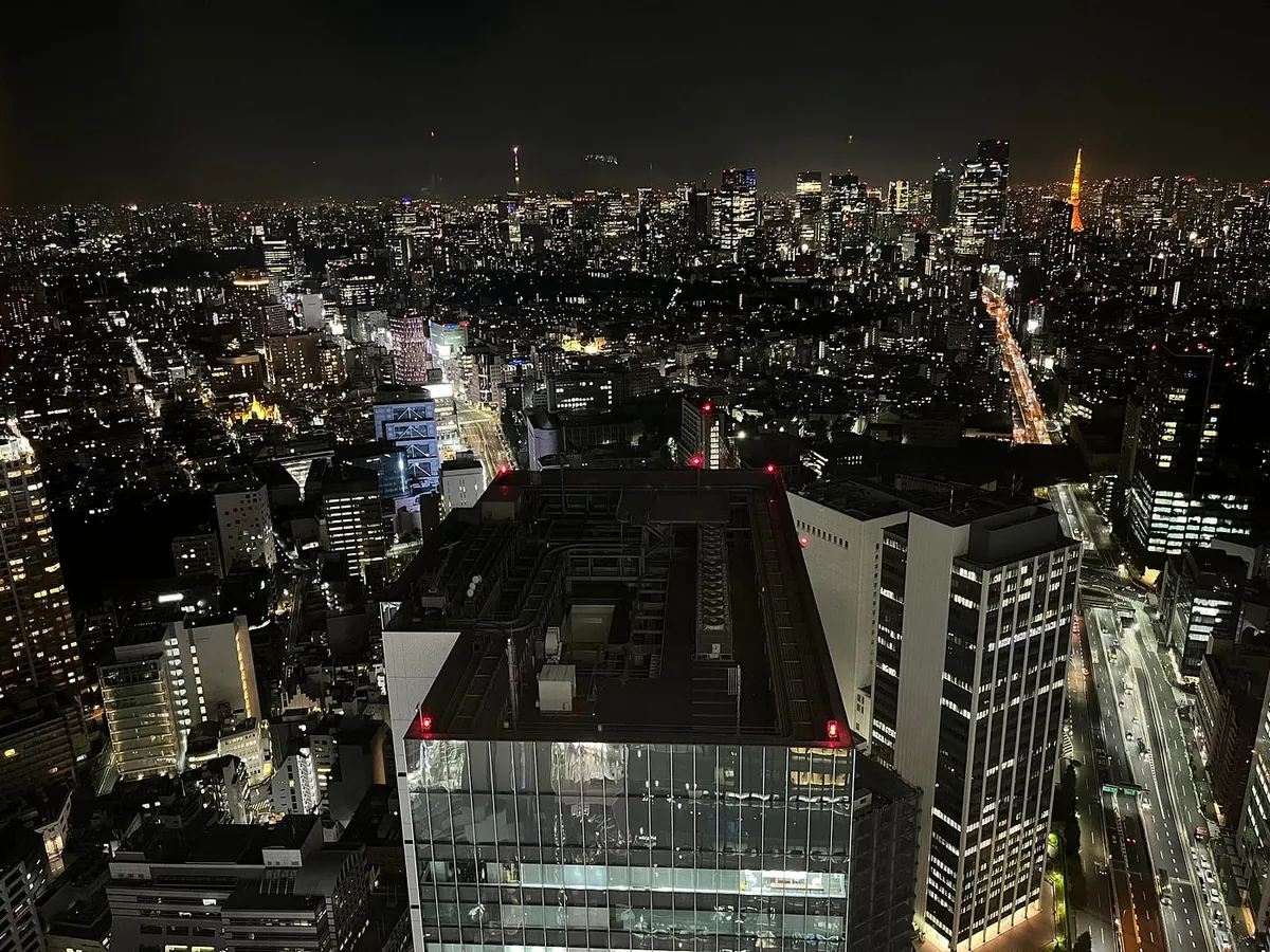 最初の画像の左上隅には遠くに東京タワーが見えます。内部は暗く、ガラスに反射があるため、人物の自撮りにはあまり適していません。