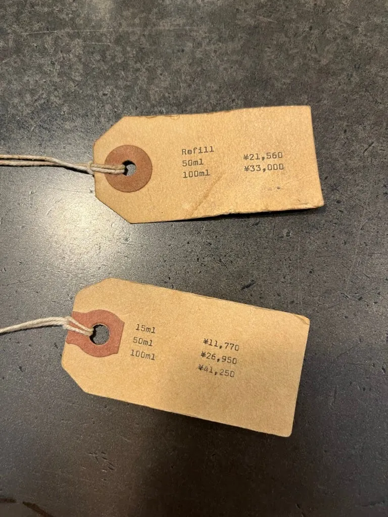 Le Laboの香水はすべて店内で封入とラベル貼りが行われます(約15〜20分かかります)。自分だけのラベルをカスタマイズできます。13は私のお気に入りで「ZhgChgLi」を選びました。10は東京を表していて、店員にどれが日本を代表するか英語で聞いたら、彼は ♨️ 😝 と答えました。