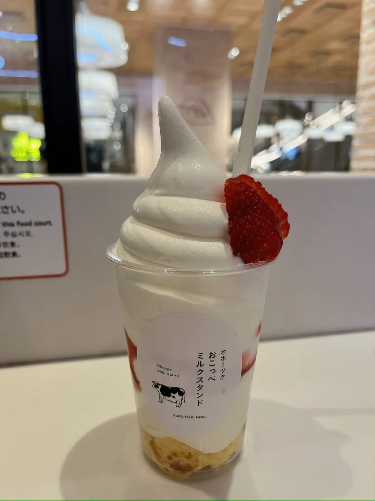 晴空塔に着いたら、まず中のショッピングモールを散策し、北海道産のいちごアイスクリームを注文して休憩しました。