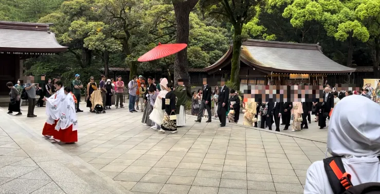 比較的に珍しいことは、ちょうど日本の伝統的な結婚式に出会い、そばで見学したことです: