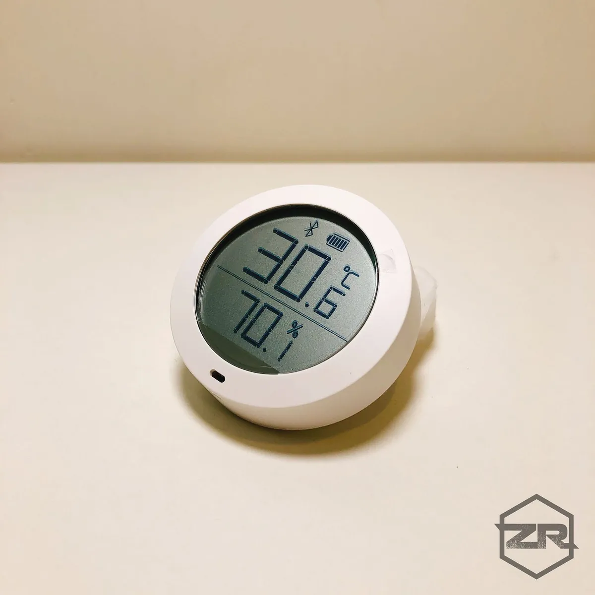別途で単4電池を1本購入して装着する必要があります。公式ではバッテリー寿命が1年と謳っており、外観は丸くコンパクトで、磁石で掛けられるデザインなので、いつでも簡単に取り外して操作できます。二段表示の画面で現在の温度と湿度を素早く確認できます。