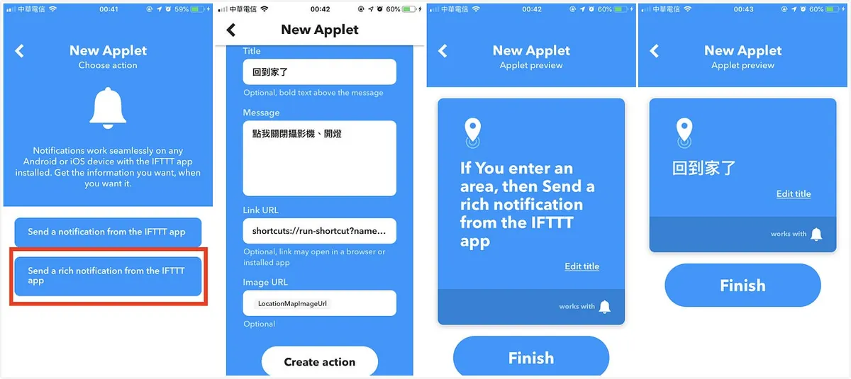 「IFTTTアプリからリッチ通知を送信する」を選択: