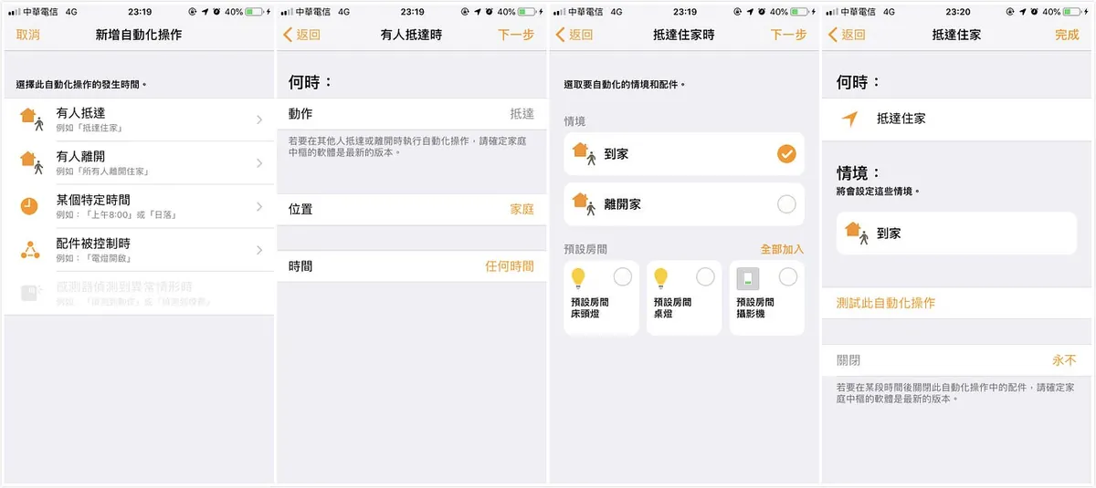 手順はサードパーティのアプリと同じですが、統合性がさらに優れています!ネイティブの「ホーム」アプリで自動化を設定した後、先ほどサードパーティのアプリで作成したものをスワイプして削除することも可能です。
