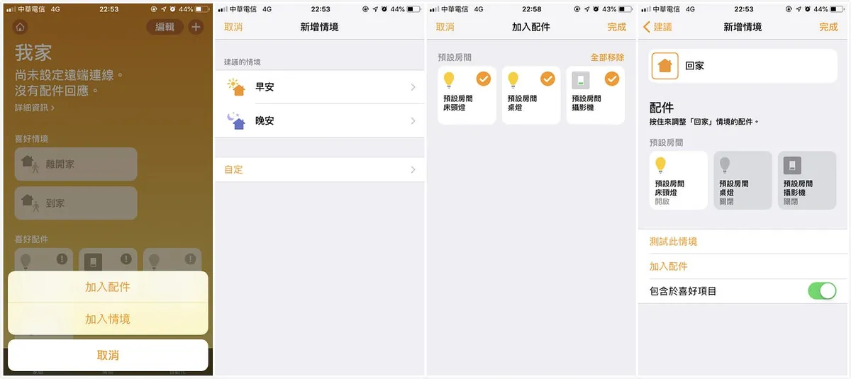 これでシーンの設定が完了です〜この時、ホーム画面でシーンをタップすると、中のすべてのアクセサリ設定が実行されます!