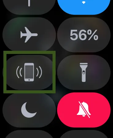 文字盤画面で下からスワイプしてメニューを表示し、「スマホが振動しているアイコン」をタップすると、スマホが音を鳴らします!