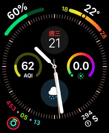 内蔵のAQIは台湾地域をサポートしていないようです。「App Store」で「在意空氣」を検索してダウンロード・インストールし、起動した後、文字盤の複雑機能の設定画面で「在意空氣」を選択してください。