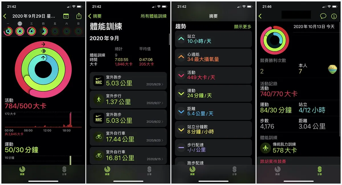 Apple Watch専用の「フィットネス」アプリでは、一日の生活を記録できます。毎日の活動量、歩数、心拍数、運動記録、活動量の増減統計、より詳細な健康情報が含まれます。コミュニティ機能では、友達と活動量を競い合い、バッジを獲得して運動のモチベーションを高めることも可能です。