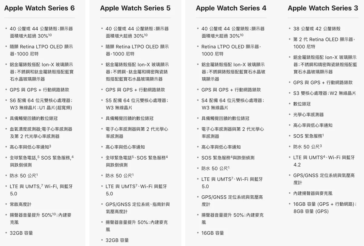 watchOS 7 の ファミリー共有機能 (子供の状況確認や高齢者の健康管理が可能)は Series 4 以上または SE モデルのみ対応。