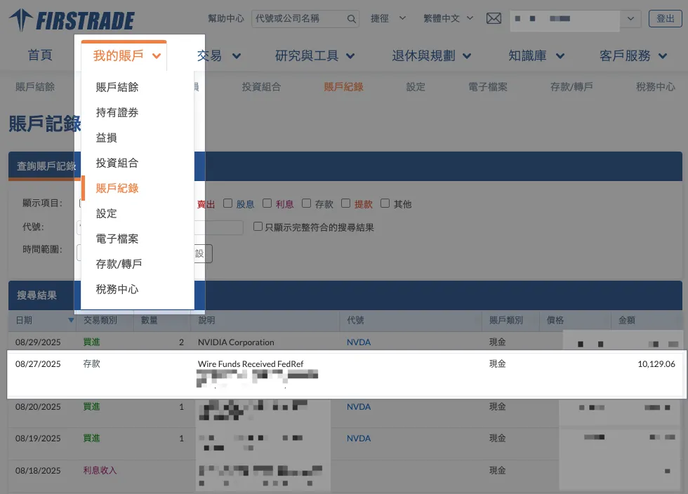 Firstradeが資金を受け取った後、送金手数料補助(1万ドル以上の単一送金)を申請する場合も時間差があります。記録が確認できない場合は、後ほどまたは翌日に再度ご確認ください。