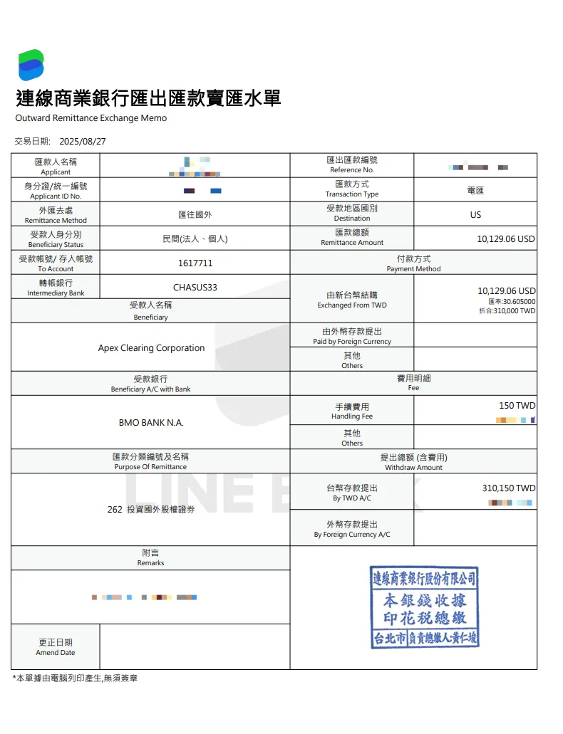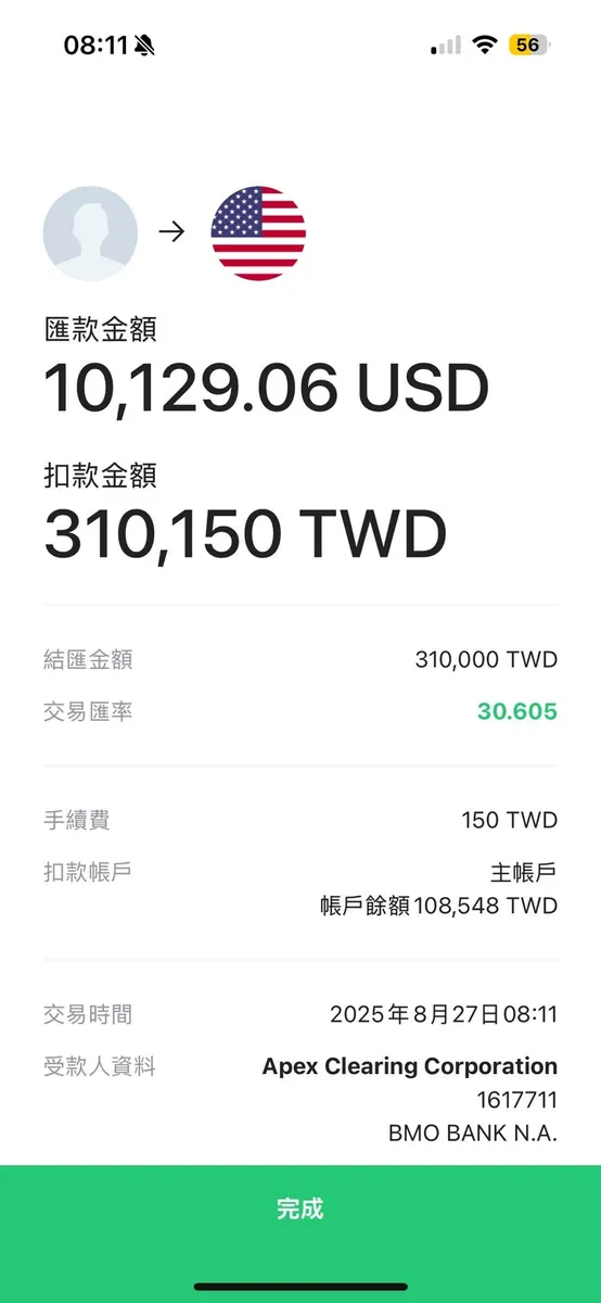 LINE Bankは私たちに150台湾ドルのみ請求しますが、実際の送金手数料は25米ドルを超えるため、25米ドルを補助します。