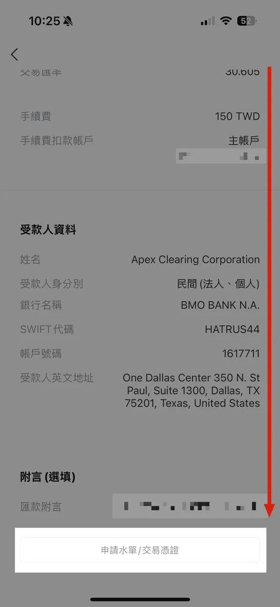 Apex Clearing Corporation受取銀行情報 — SWIFTコードを直接入力すると自動で反映されます