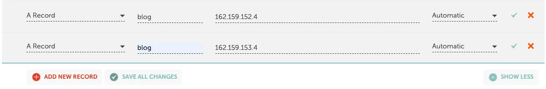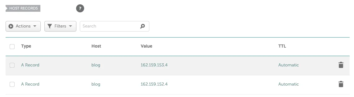 「HOST RECORDS」セクションにレコードがあるかどうか再度確認してください。