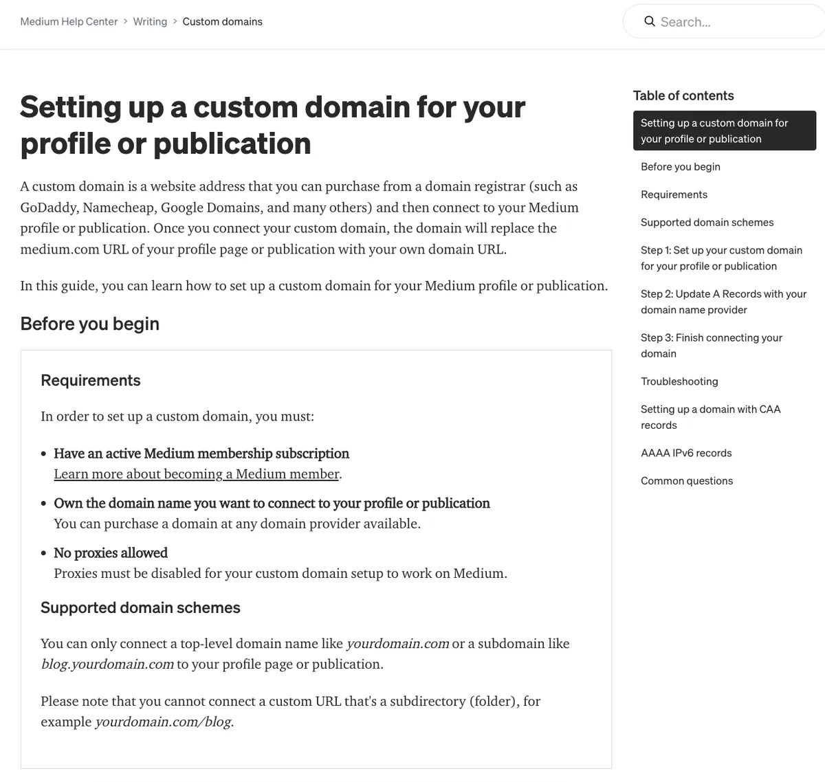 Domain の権威値を一から育てるには非常に長い時間がかかります。この機能は、もともとウェブサイトサービスを持っている場合(例:musicplayer.com)に最適だと思います。コミュニティを作りたい場合は、直接 Medium を使い、その際にドメインは(blog.musicplayer.com)のように使うと良いでしょう。