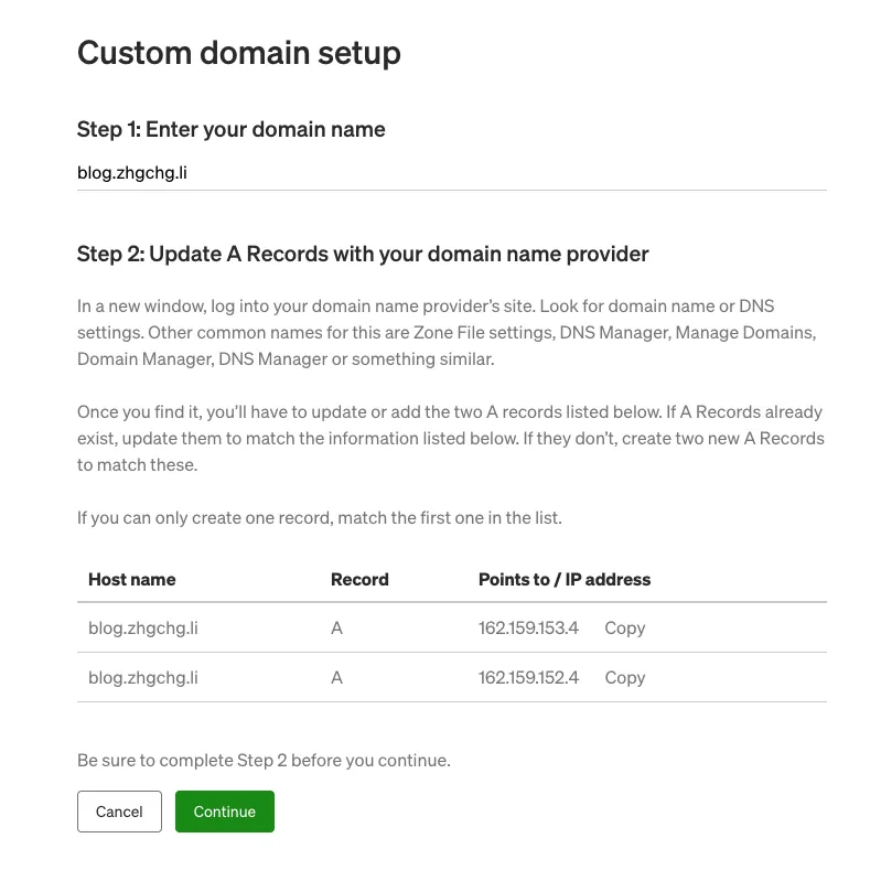 私は2021年に https://blog.zhgchg.li を設定しました。途中で公式がカスタムドメイン機能を停止しましたが、それでも有効で、現在も正常に使用できています