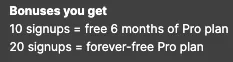 現在、10人のユーザーを6ヶ月間Proに招待/20人のユーザーを招待すると永久Proになるプランがあります。この記事を気に入った方は、本文内のリンクからダウンロードしてインストールし、私とSidekickを応援してください!