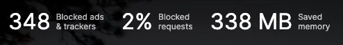 左上に反トラッキング、メモリ管理、広告ブロックの状況を数値で表示